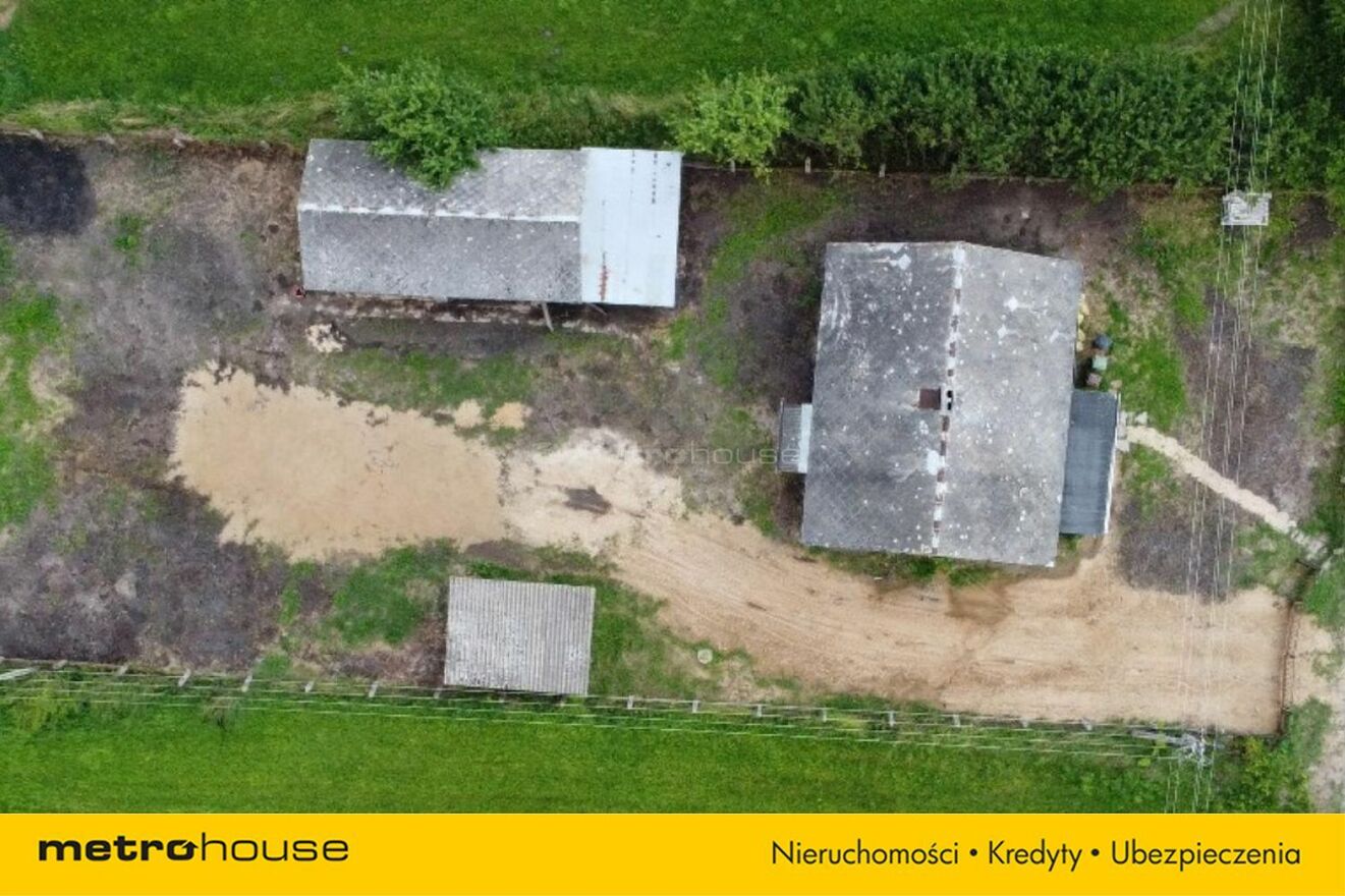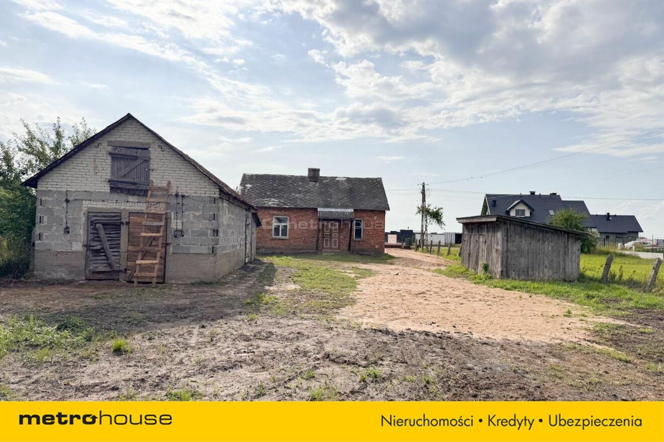 Istniejący budynek mieszkalny (około 91 m² - 10,7 m x 8,5 m, 3 pokoje) to ceglana konstrukcja z dachem krytym eternitem, ogrzewana piecem kaflowym.